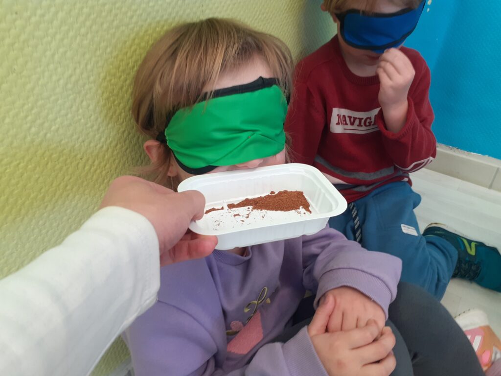 - Sentir les aliments: chocolat, curry, cannelle, sucre, café