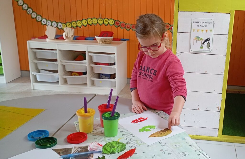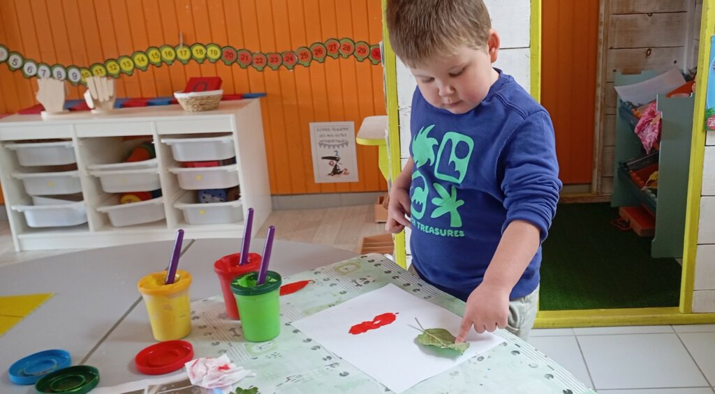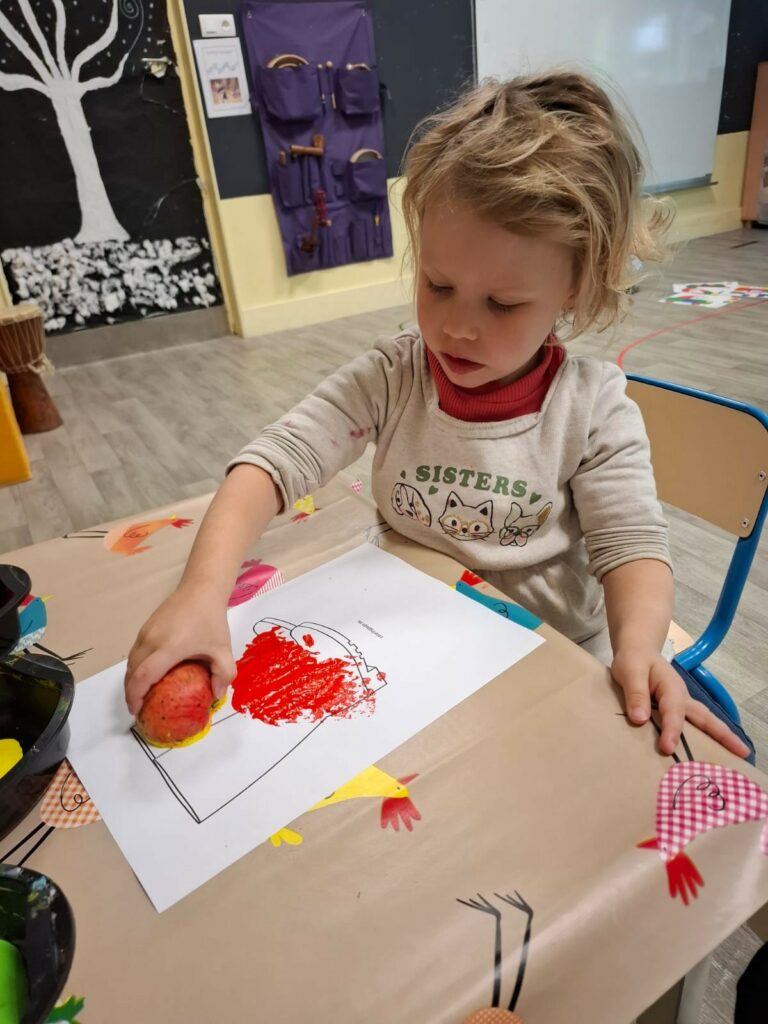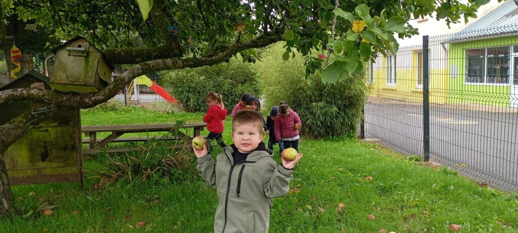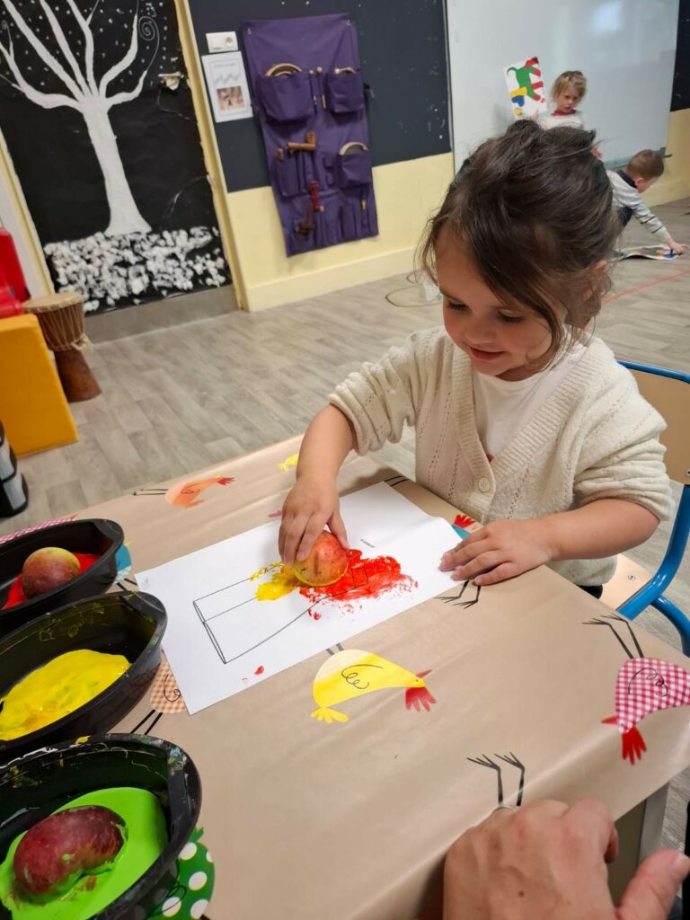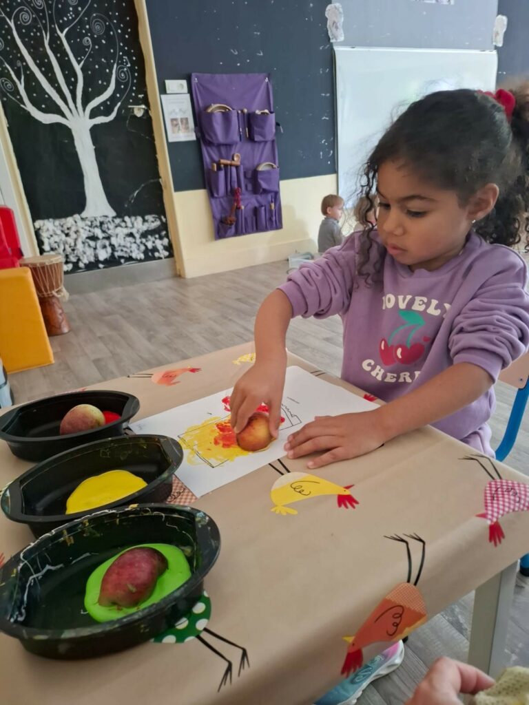 Puis, nous avons réalisé des œuvres artistiques : empreintes de peinture avec des pommes, des feuilles…