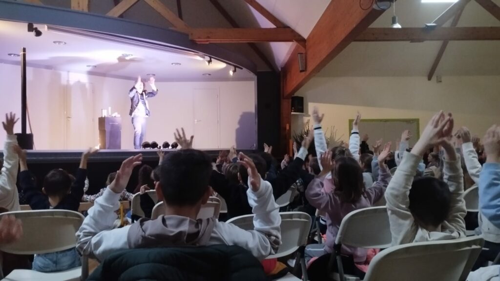 Lundi 15 décembre, toute l’école s’est rendue à la salle des fêtes pour assister à un spectacle de magie (offert par la mairie de Berné). Emma est montée sur scène pour faire plusieurs démonstrations.